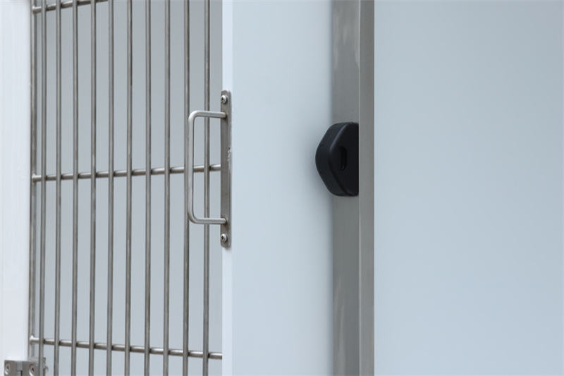 Menampilkan pintu pengunci automatik dwi-titik sebagai standard, kelegaan minimum antara bar menegak dan lubang penguncian memastikan operasi hampir senyap walaupun apabila kaki haiwan peliharaan menyentuh panel pintu. Bingkai diameter 8mm, bar menegak 6mm, dan palang 8mm secara kolektif membentuk struktur sangkar yang selamat dan kukuh.